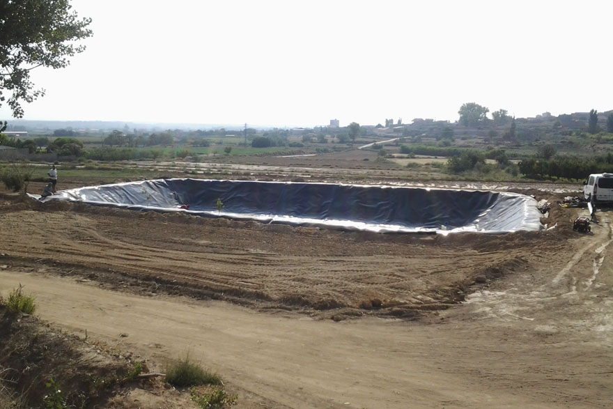 Es tracta d'una bassa d'aigua per a reg de nova construcció. Capacitat aproximada de 1.000 m3, per la qual s'han utilitzat 800 m2 de làmina de Polietilè d'Alta Densitat d'1 .5 mm (PEAD). L'obra està realitzada mitjançant excavació, meitat terraplenament. També s'actua amb el embridaje dels tubs de sortida d'aigua.